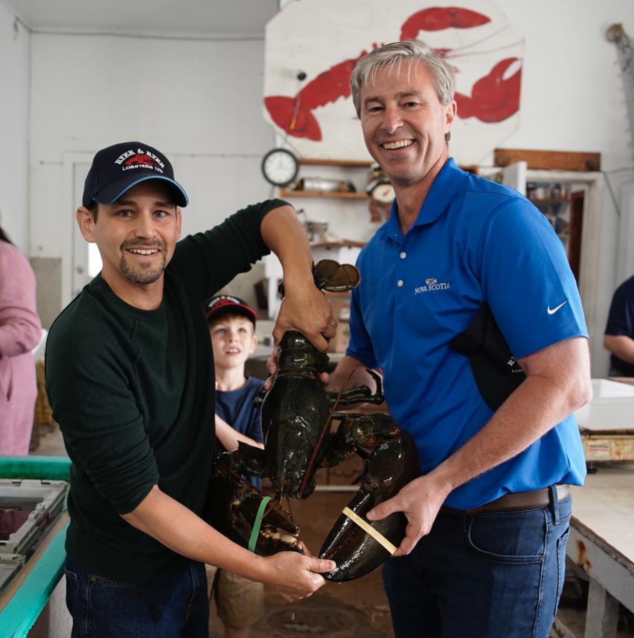[Photo: Premier Tim Houston with Kevin Ryer of Ryer & Ryer Lobster Ltd. in Indian Harbour. (Province of Nova Scotia)]